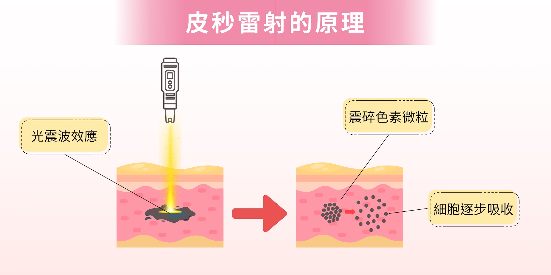 傳統雷射治療色素主要依賴光能轉化為熱能,利用熱效應破壞黑色素,但這同時也增加了周圍組織受熱損傷的風險,並且可能引發術後色素沉澱反黑的現象。而皮秒雷射透過極短脈衝的光震波效應,減少了熱能對皮膚的影響,降低了組織的熱傷害風險,並且能更精確地處理深層及細微的色素問題,減少術後的反黑機率。此外,皮秒雷射的修復期相對較短,患者能更快地恢復。