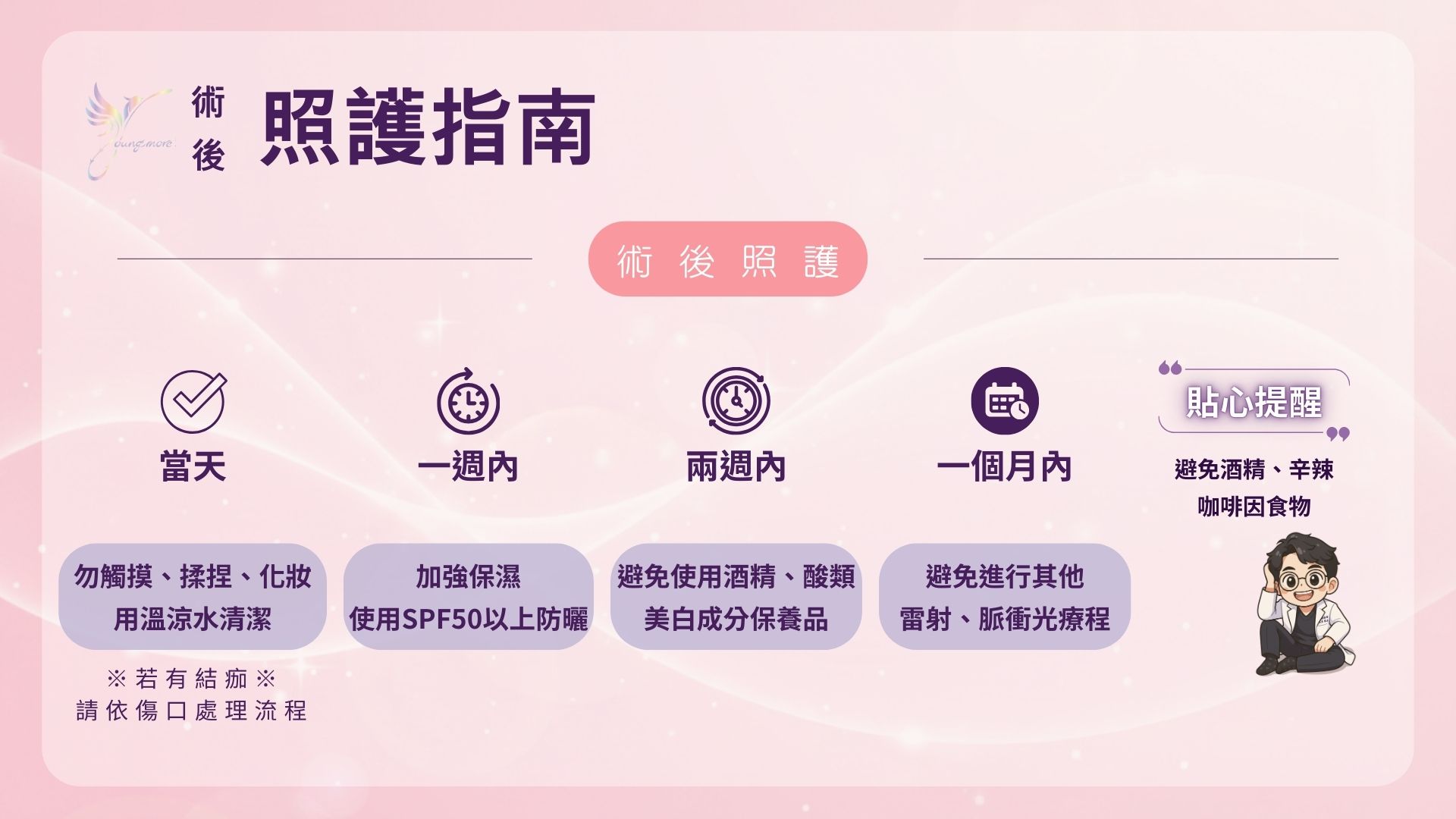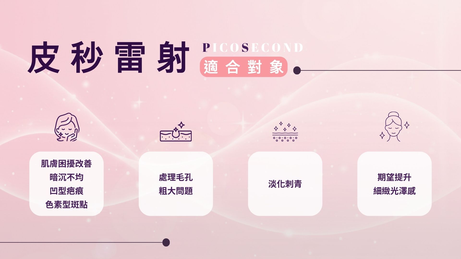 由於皮秒雷射的脈衝時間短,對皮膚組織的熱損傷顯著減少。這一特性使皮秒對於敏感肌膚或需多次治療的患者而言是合適的選擇。此外術後恢復期相對較短,治療後的不適感也較輕微,患者可以在短時間內回復日常生活。