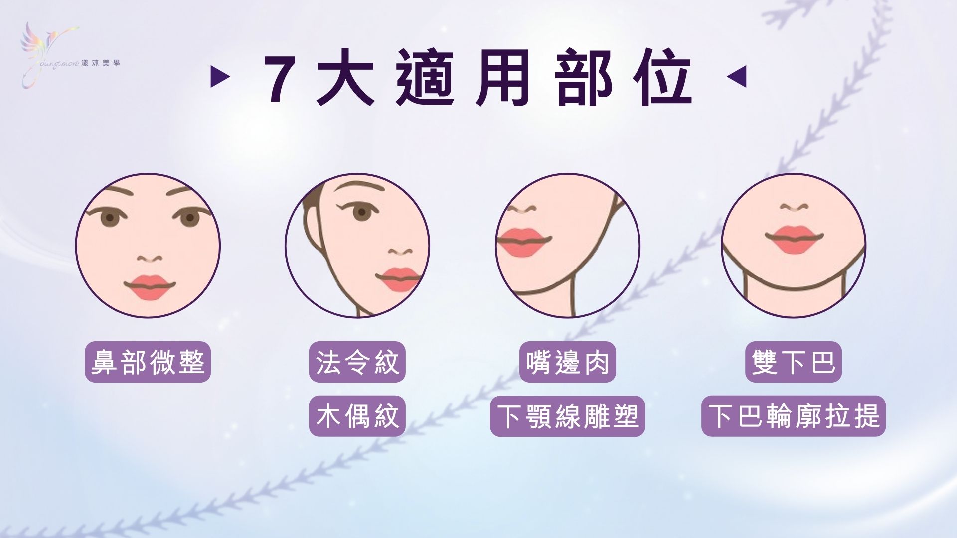 此技術特別適合中下臉部輕度至中度鬆弛的患者,例如面部兩側出現的嘴邊肉、雙下巴、法令紋、木偶紋等問題。還能應用於改善下巴輪廓、鼻部微整、以及臉部輪廓的V臉下顎雕塑等需求。對於這些希望通過埋線方式來改善面部線條、並在短期內獲得顯著效果的人群來說,是一個理想的選擇。